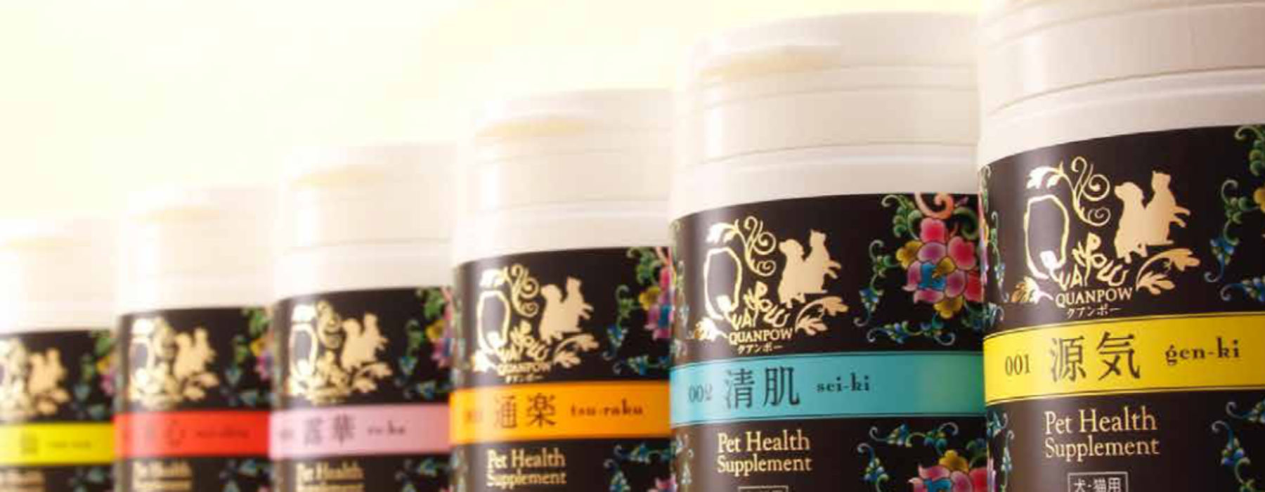 「QUANPOW(クアンポー)」シリーズは、イスクラ産業株式会社が提供するペット専用の中医学(中国伝統医学)に基づくヘルスケアサプリメントです。日本ペット中医学研究会の推奨を受け、獣医師の診断・処方のもとで使用される製品群として、動物病院で取り扱われています。